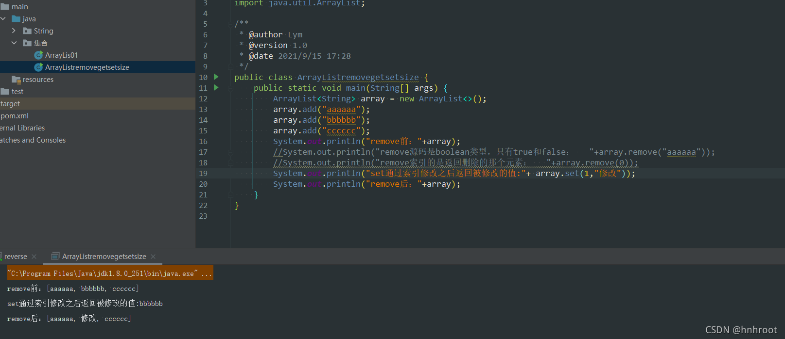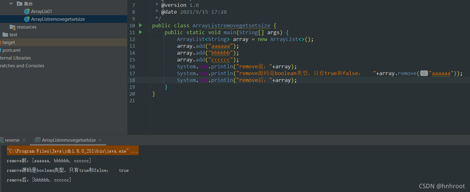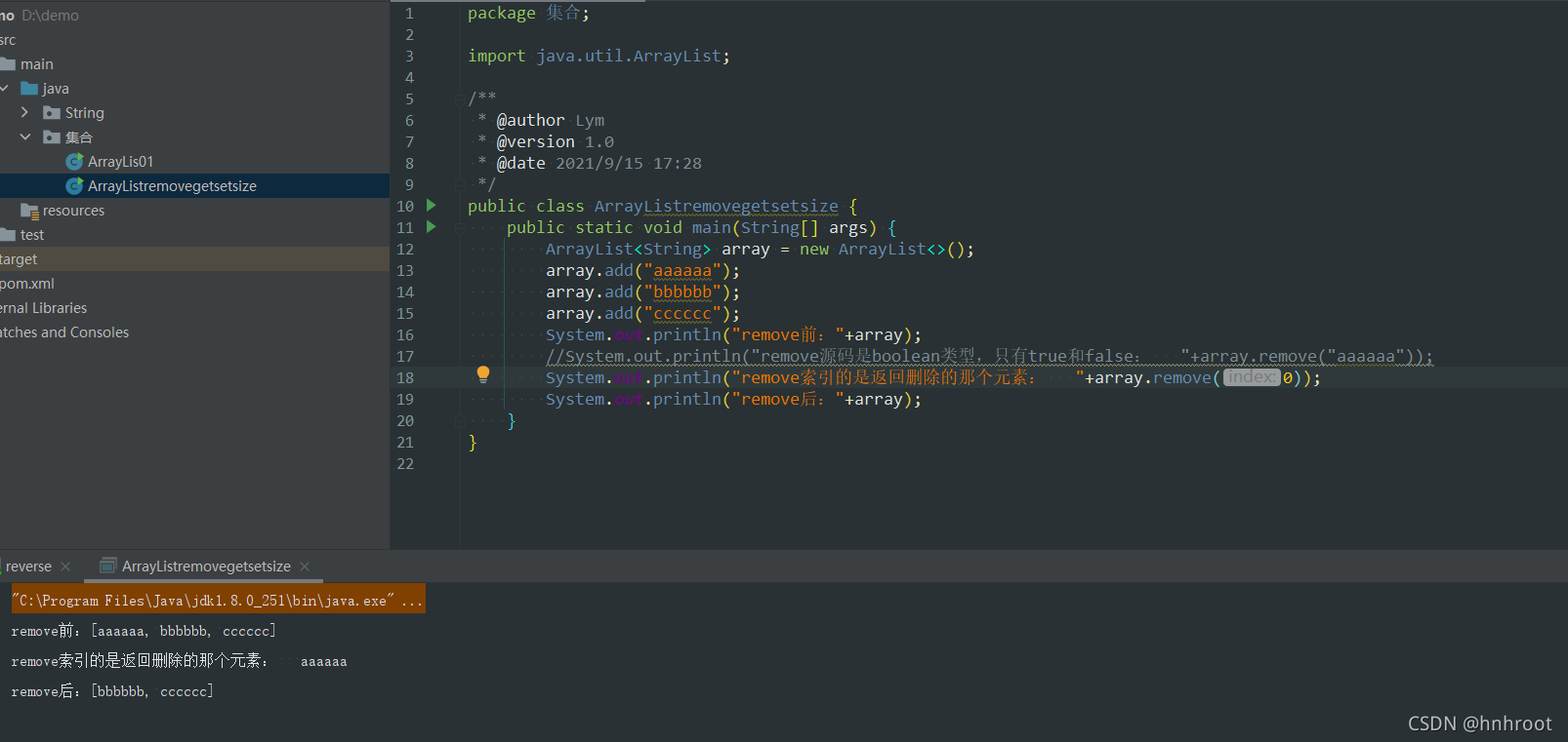remove索引的是返回删除的那个元素,如下图所示,0索引是aaaaaa,所以删除的时候是把aaaaaa删除了然后再把删除的这个值返回出来,控制台有