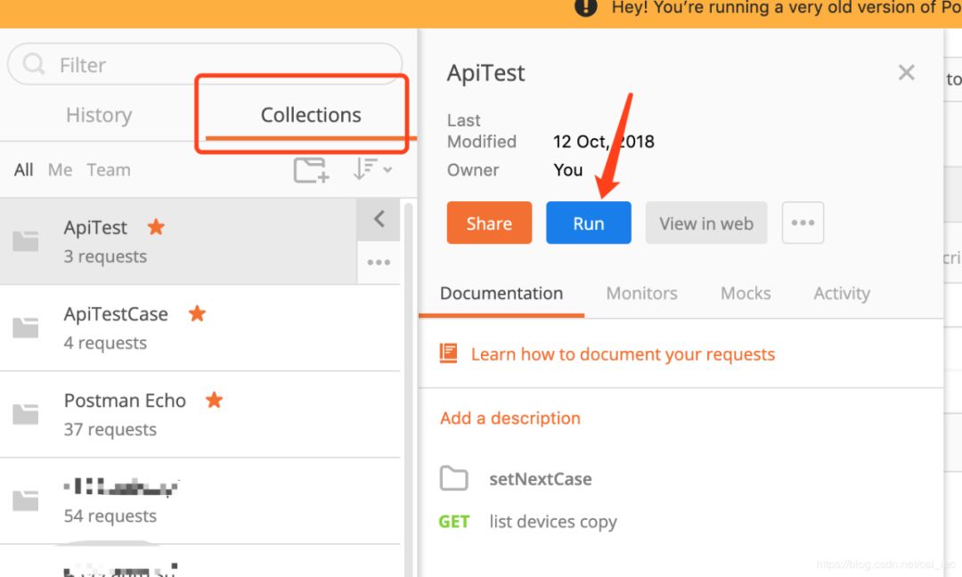 想要进行接口的批量测试、管理,那么我们需要将待测试的接口全部都保存到同一个集合(Collections)中,你可以认为就是保存到同一个文件夹中。先看看 Postman 中的操作步骤: