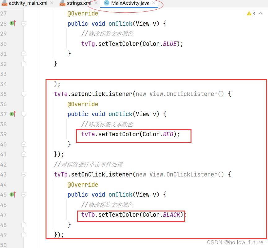 本文介绍如何通过修改布局资源文件并设置ID属性来实现安卓应用中标签点击事件的功能,包括改变文本颜色等基本UI交互操作。