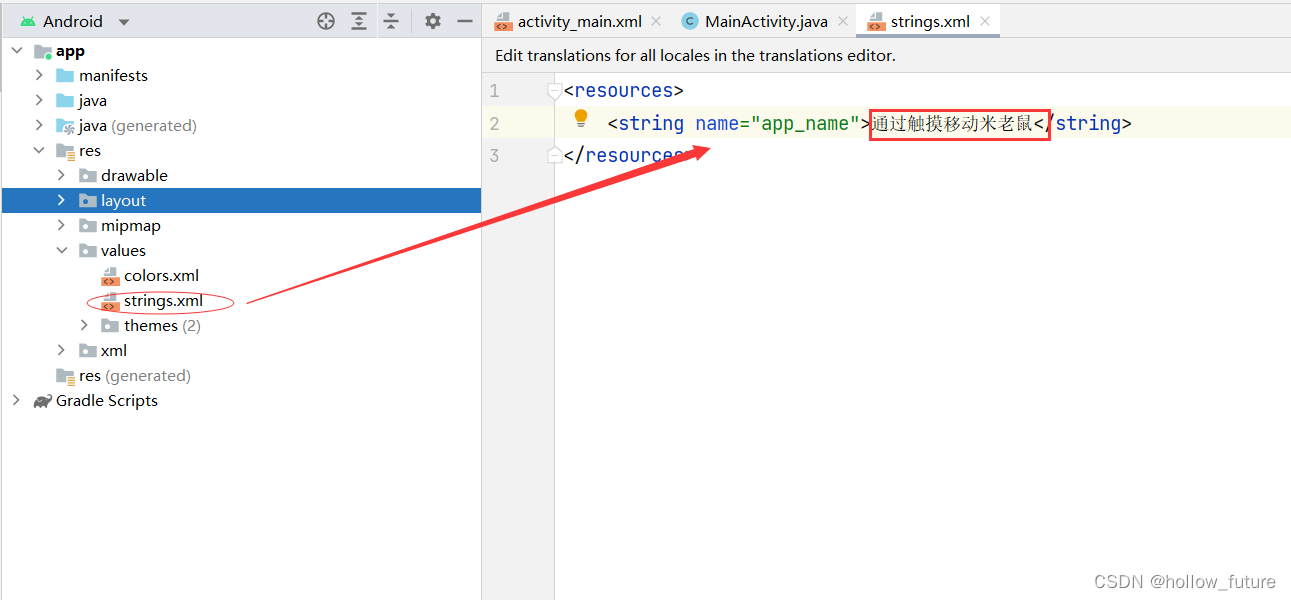 打开字符串资源文件改变应用标题(可以省略)