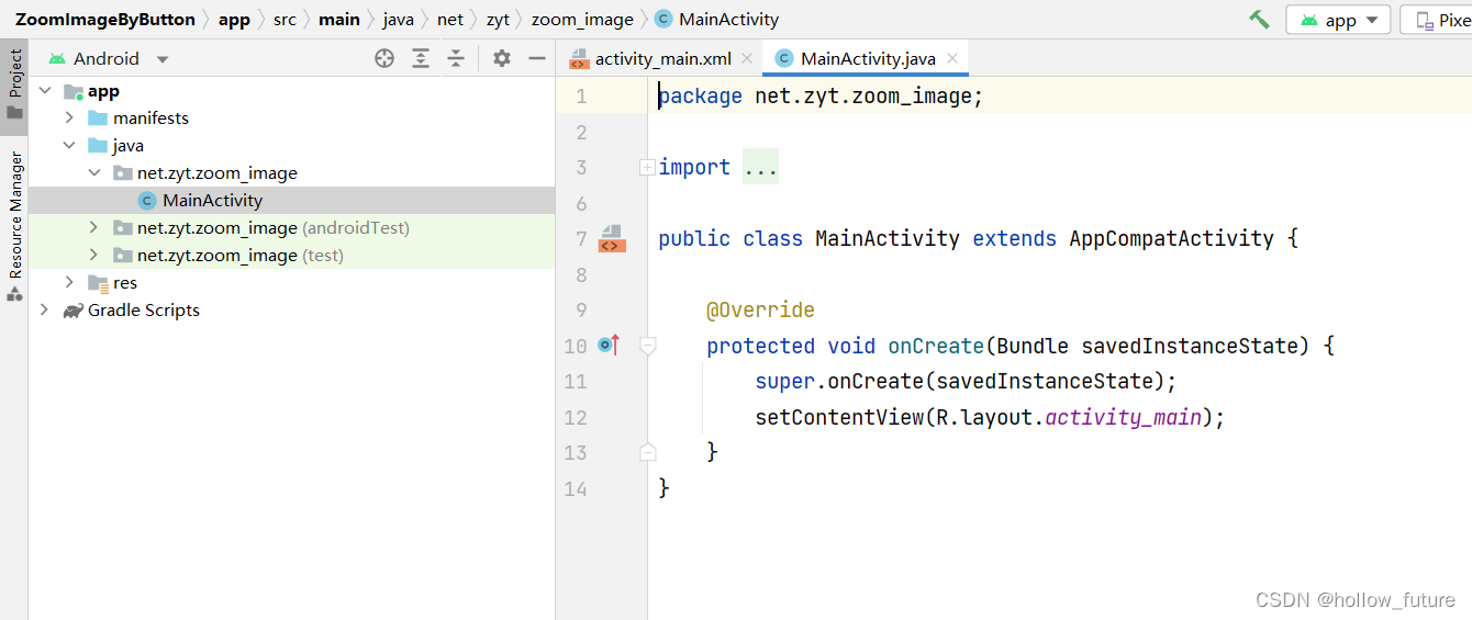 创建安卓应用【ZoomImageByButton】