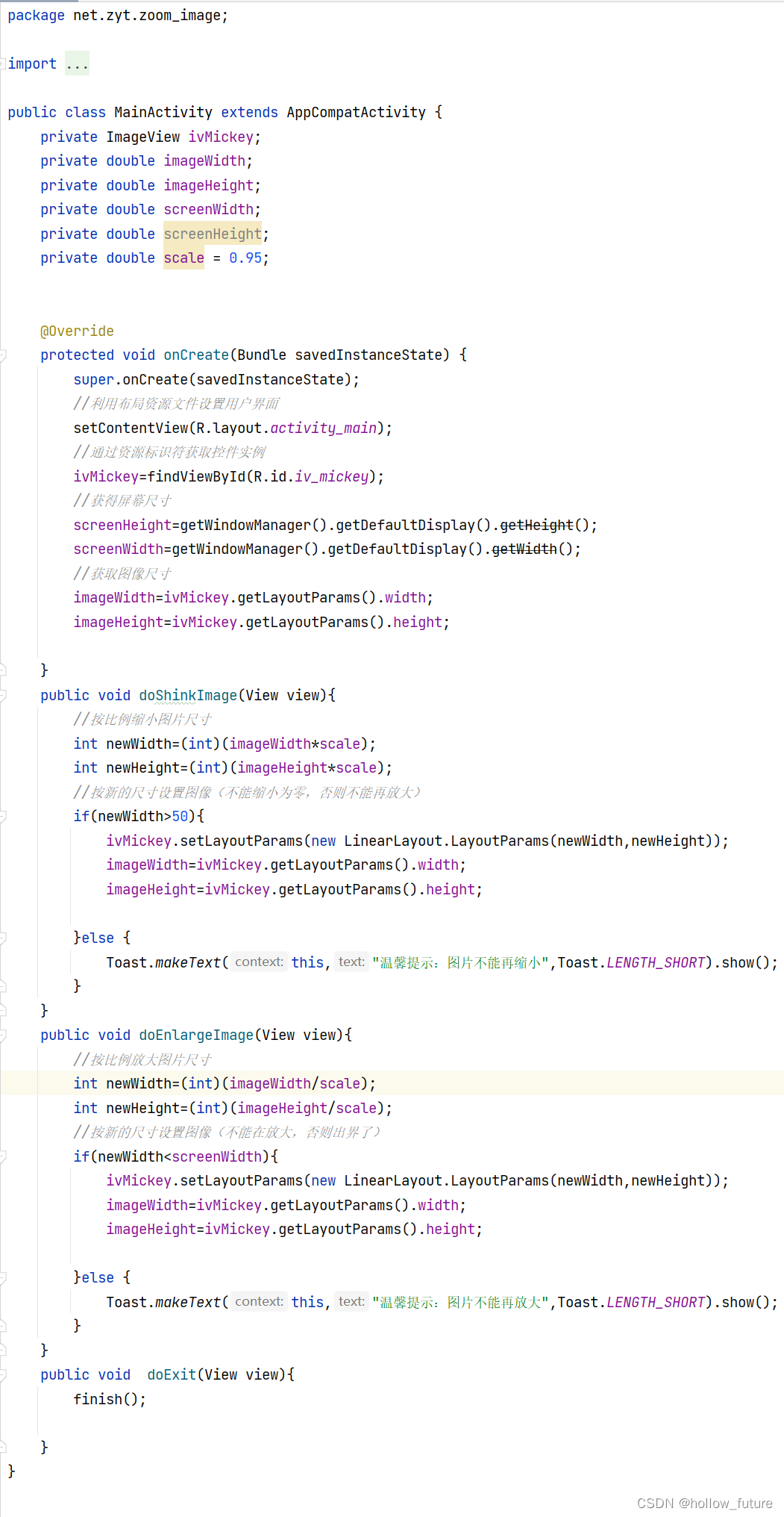 Toast.makeText(this,"温馨提示:图片不能再缩小",Toast.LENGTH_SHORT).show();