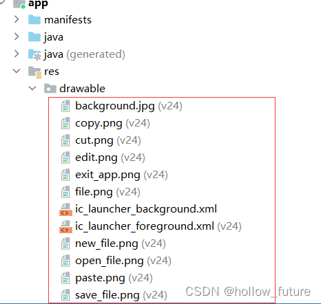 创建选项菜单,在里面利用getMenuInflator()获取菜单填充器,调用其inflate()方法将菜单配置文件生成选项菜单,第一个参数是菜单配置文件标识,第二个参数是选项菜单对象