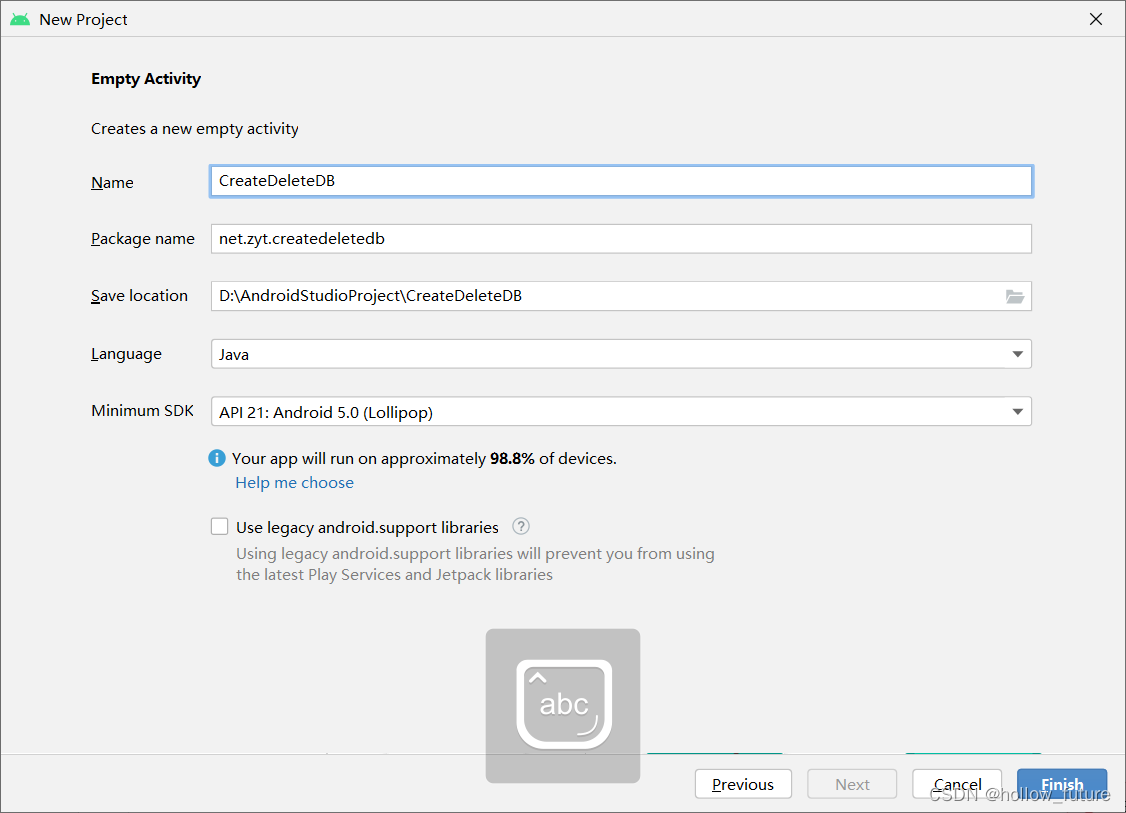 基于Empty Activity模板创建安卓应用CreateDeleteDB