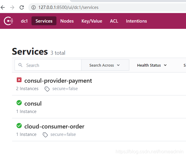 spring: cloud: consul: host: localhost port: 8500 discovery: healthCheckPath: /health #健康检查路径 healthCheckInterval: 15s #健康检查时间间隔 instance-id: myconsul #唯一ID,在consul中不能重复 enabled: true service-name: datacenter-coreservice #服务名,同一服务名下可有多个节点 tags: name=hr# 类似于注释,官网说是类似于元数据,我也不懂,不过可以自己解析成需要的数据 enabled: true
