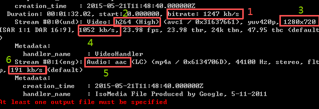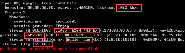 源视频数据流情况如下图(使用命令ffmpeg –i 视频名称,查看):