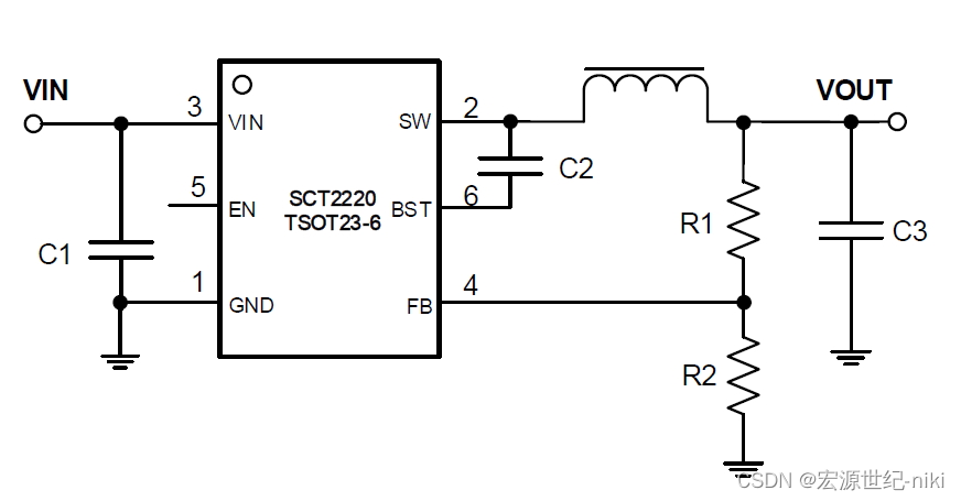 SCT2220是一款输出电流2A的高功率密度全集成同步降压DCDC转换器。其输入电压范围为4.2V到17V。SCT2220提供750KHz的开关频率。SCT2220采用COT控制模式,提供脉冲频率调制模式(PFM)。睡眠模式下静态电流为150μA,可满足用户轻载高效的应用需求。SCT2220提供电流限制和过流打嗝(hiccup)保护,过热关断保护,输出过压保护以及输入欠压保护,为实际应用的安全性提供多重保障。SCT2220提供小尺寸的SOT563-6L和SOT23-6L两种封装,为用户小型化设计提供了简洁的电源解决方案。