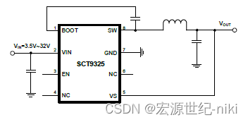 SCT9325是2A,500KHz,同步降压转换器,高达32V宽输入电压范围,它完全集成了130mΩ高侧MOSFET和70mΩ低侧MOSFET,提供高效率的降压DCDC转换。SCT9325采用峰值电流模式控制,集成补偿网络和输出反馈电阻网络,通过最小化片外元件数量,使器件易于使用。SCT9325支持典型的20uA超低静态脉冲跳过调制(PSM),在1毫安和5毫安轻载条件下分别达到80%和85%的效率。SCT9325是电磁干扰(EMI)友好型降压转换器。SCT9325具有500KHz开关频率的±6%抖动范围和开关频率调制率的1/512的频率扩展谱(FSS),以降低传导EMI。该变换器采用专有的栅极驱动方案,在不牺牲MOSFET开关时间的前提下抵抗开关节点的高频振荡,进一步消除了MOSFET硬开关产生的高频辐射EMI噪声。当变换器进入PSM模式时,为了解决轻载条件下的辐射EMI噪声,设计了人工开关节点抗振铃电路。SCT9325提供输出过压保护、逐周期峰值电流限制和热关机保护。封装为SOP-8L。