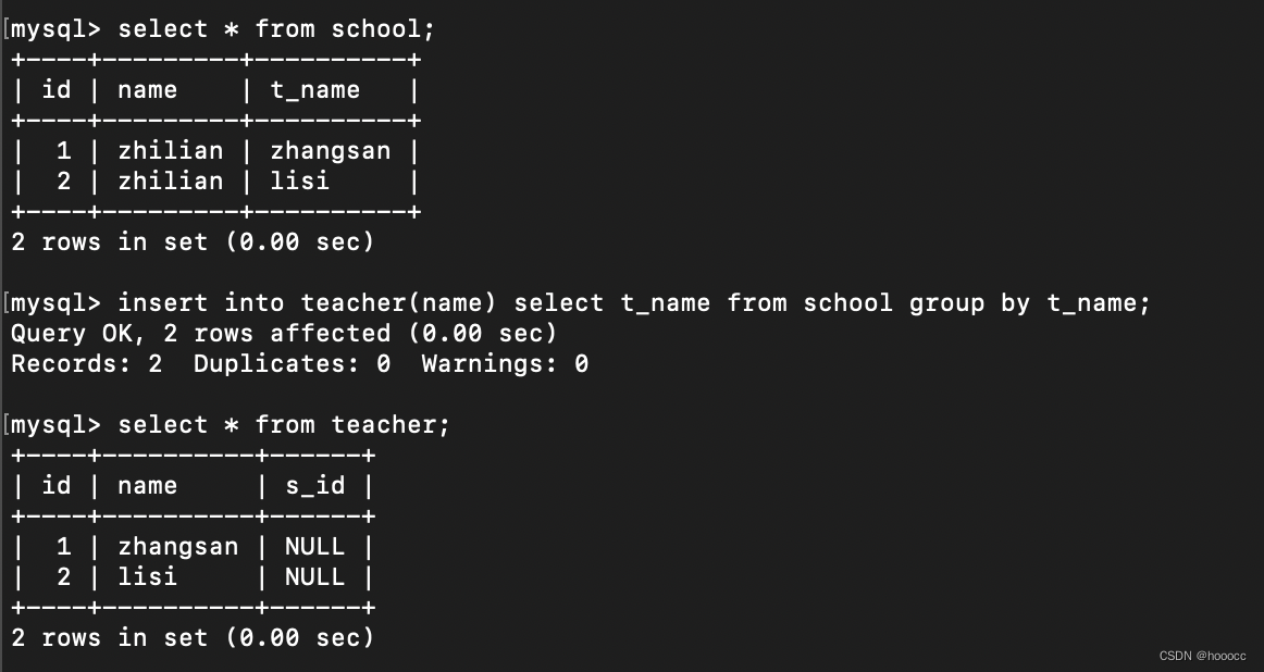 本文介绍了如何使用SQL语句将school表中的t_name字段插入teacher表,更新school表以替换t_name为teacher表的id,并创建新表teacher1并将数据从teacherg表导入。