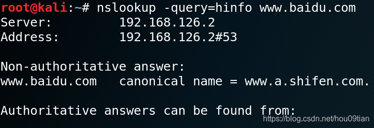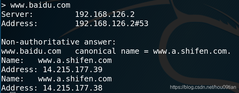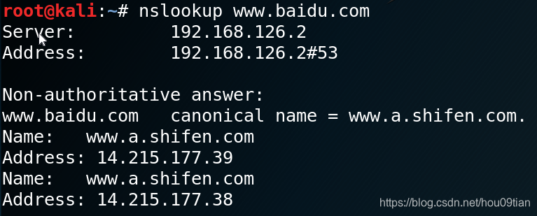 图1中的指令在域名服务器中查询了www.baidu.com的信息。