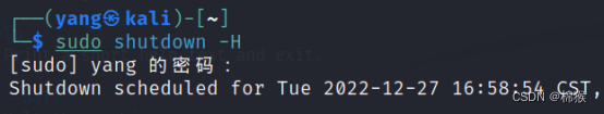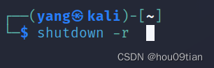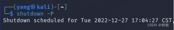 在Kali Linux中,shutdown指令用于停止(halt)、关闭(power off)或者重启(reboot)系统。
