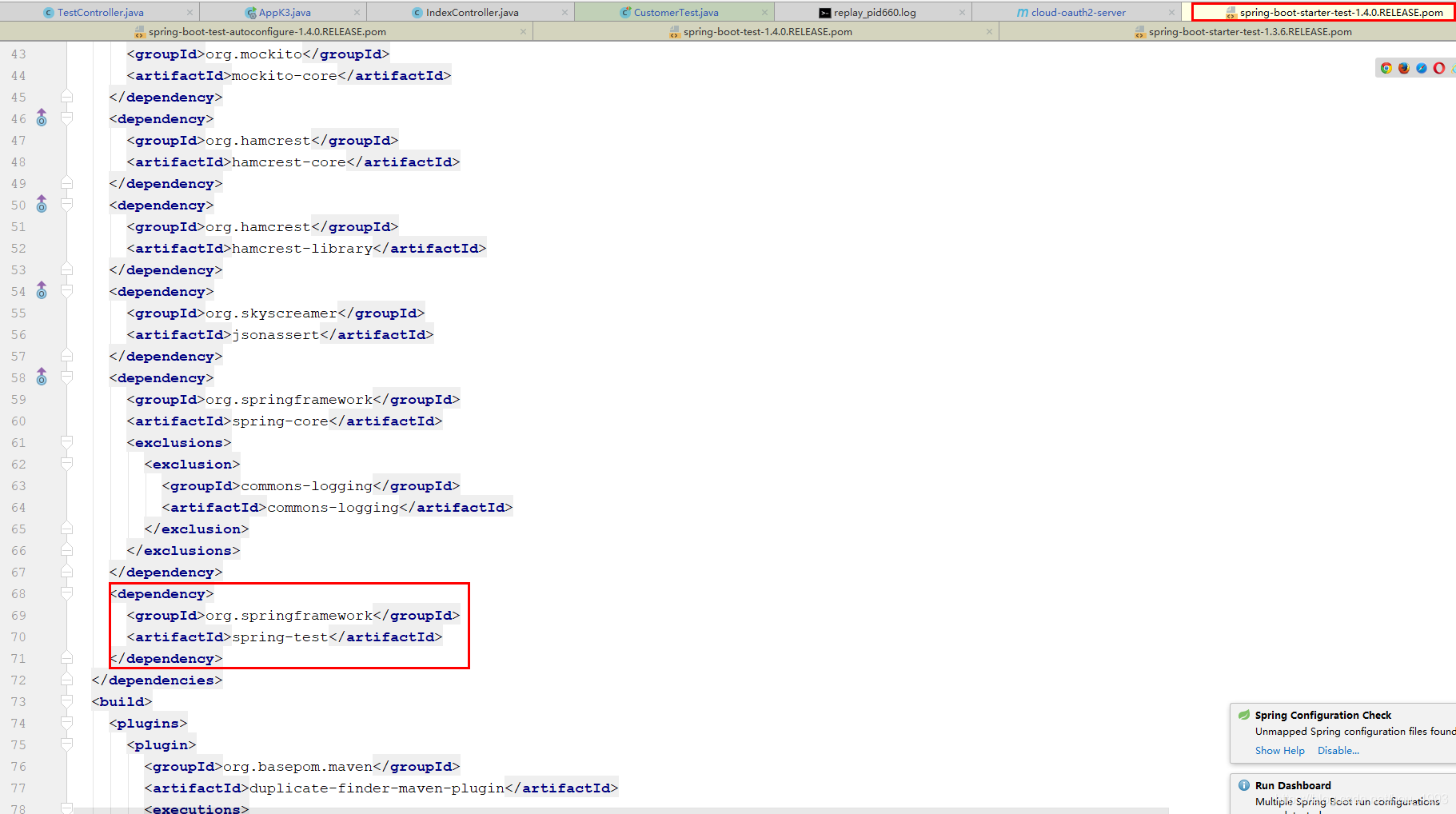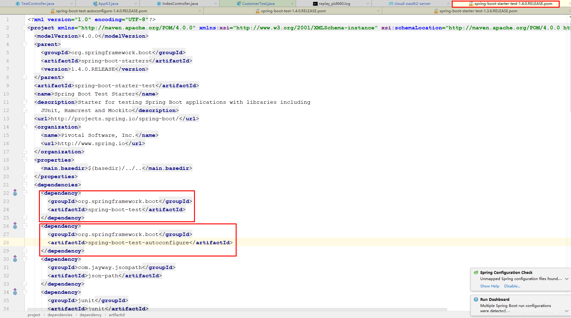 spring boot 1.4.0以上在spring-boot-starter-test已加入以上两个jar,只需