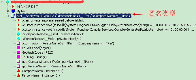 查看IL代码,可以看见匿名类型在IL中会生成一个类(也称为一个投影)
