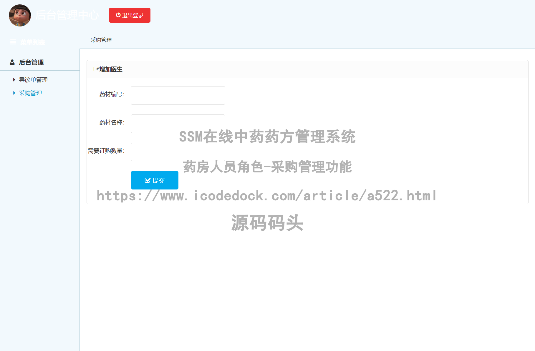 #### SSM在线中药药方管理系统-药房人员角色-采购管理↓↓