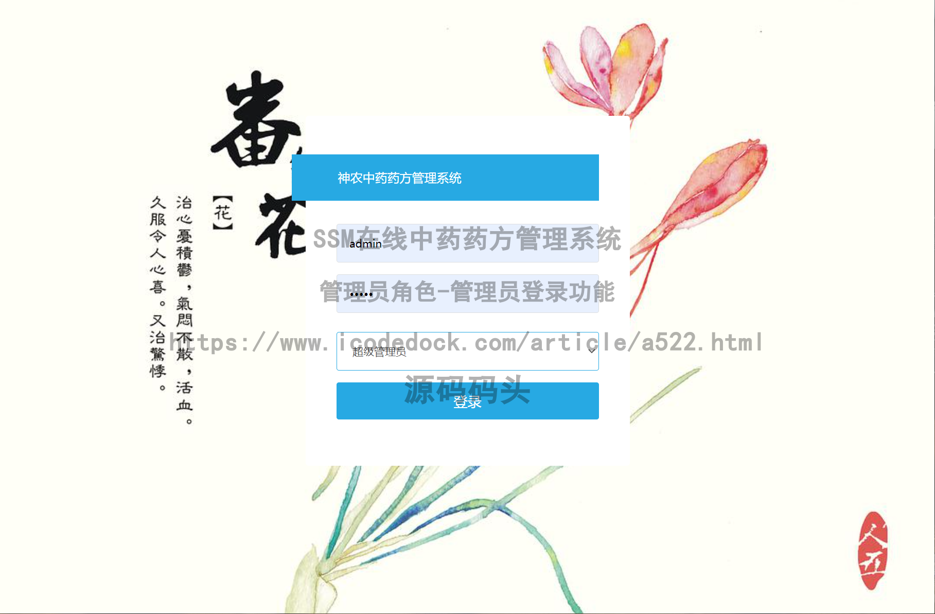 #### SSM在线中药药方管理系统-管理员角色-管理员登录↓↓