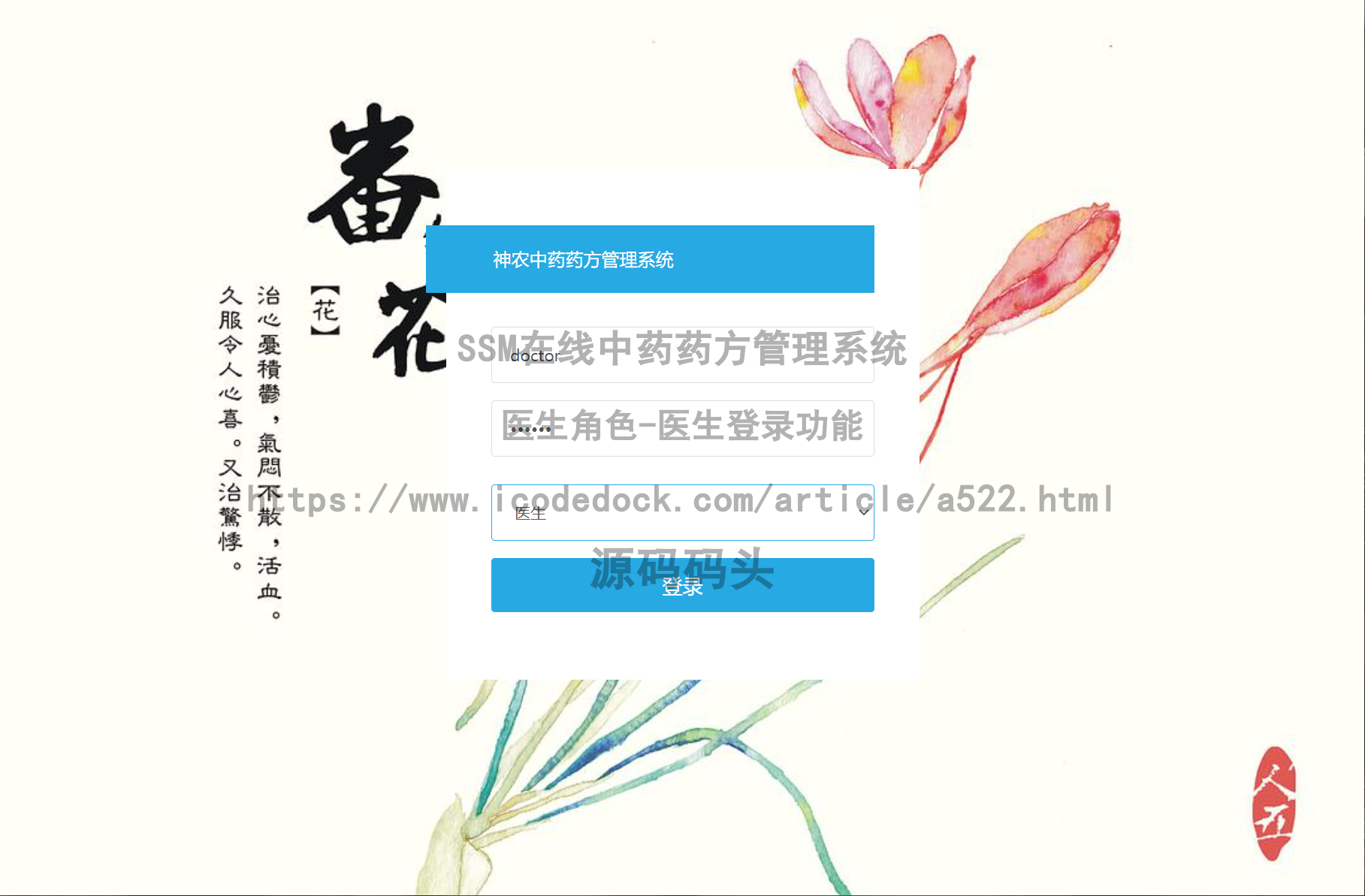 #### SSM在线中药药方管理系统-医生角色-医生登录↓↓