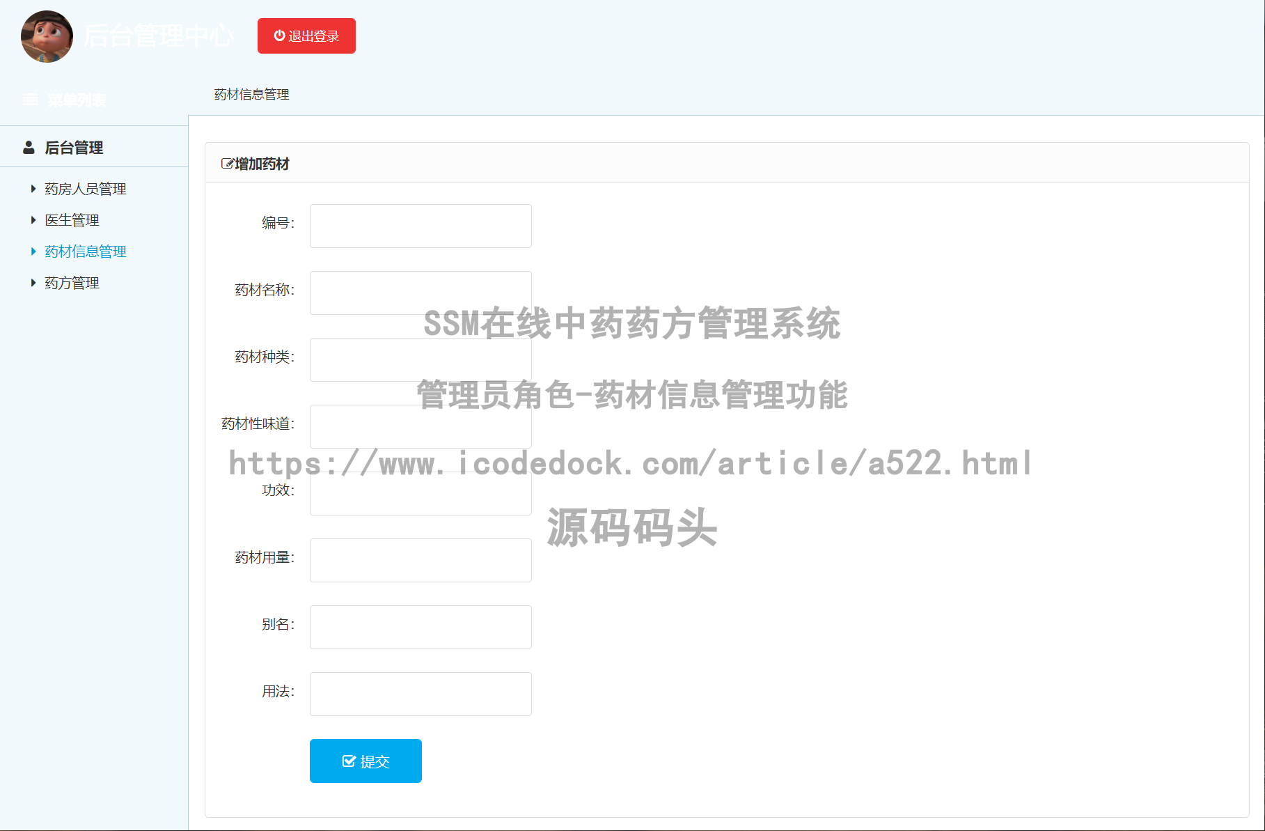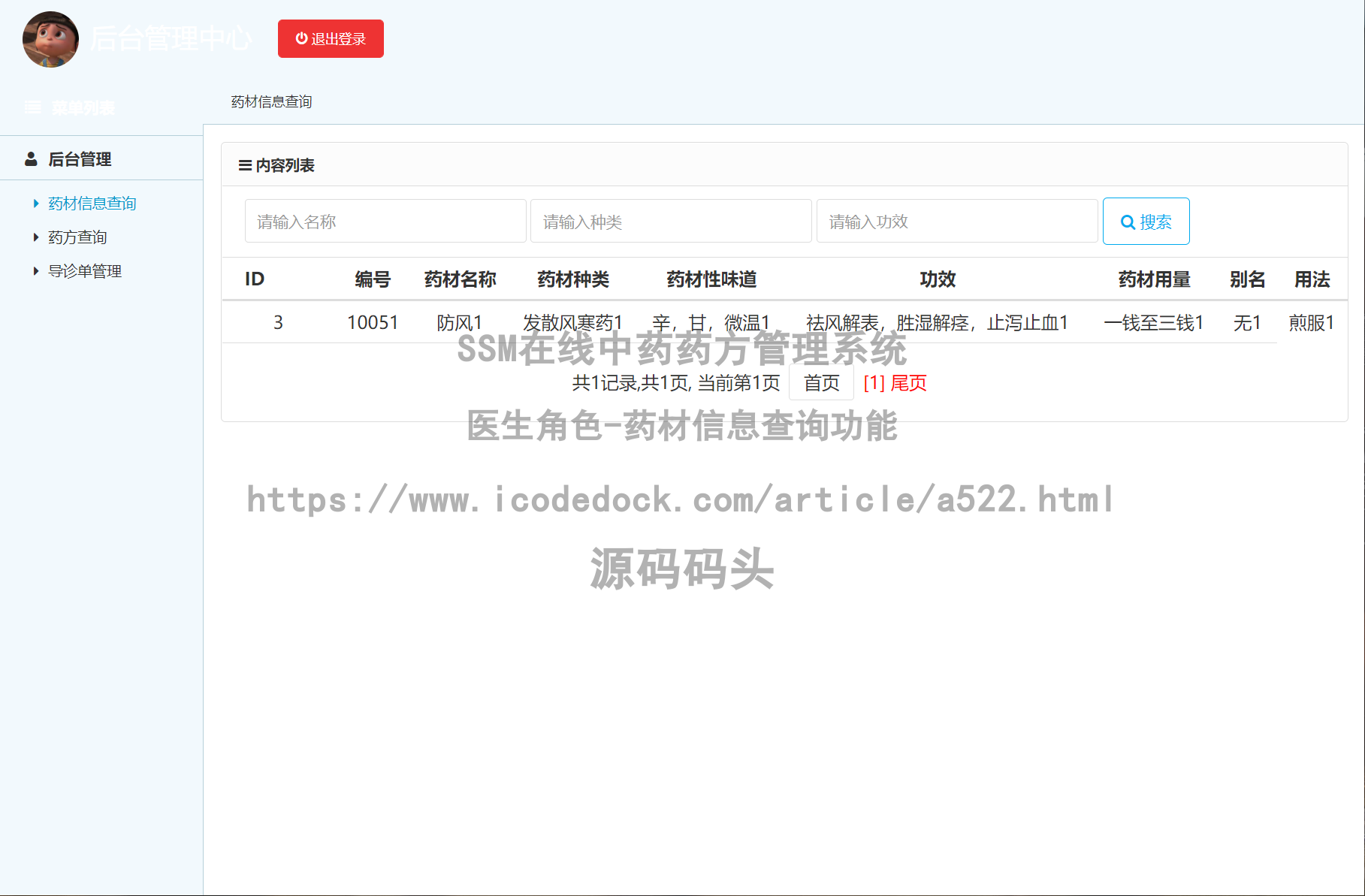 #### SSM在线中药药方管理系统-管理员角色-药材信息管理↓↓