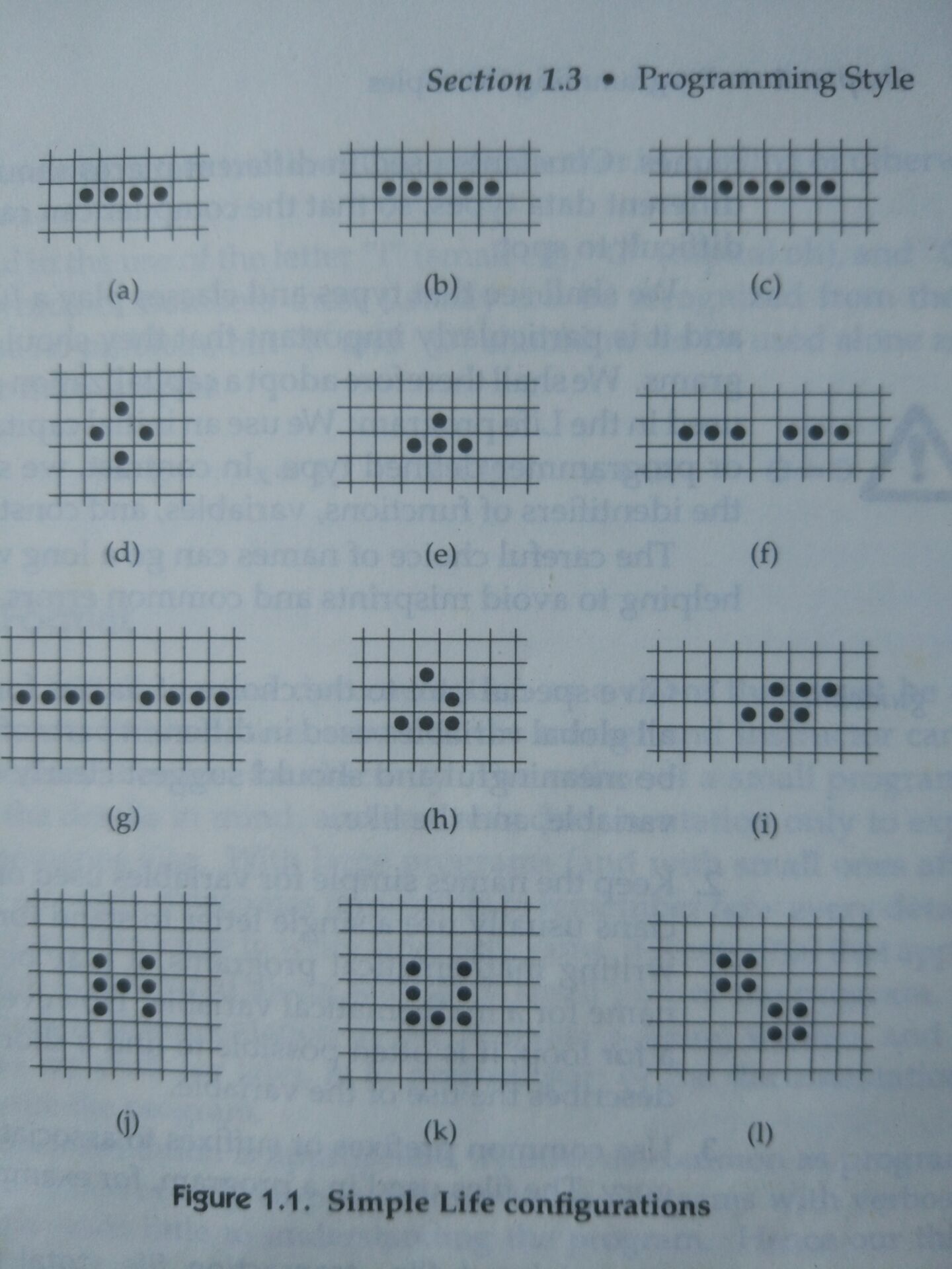 这个头文件定义了生命游戏类(Life)的基本结构,包括成员函数和私有变量。其中的常量 maxrow 和 maxcol 分别表示网格的最大行数和最大列数。包含的成员函数有 initialize()、print() 和 update()。