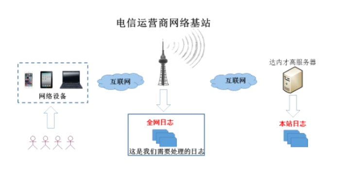 如图所示,电信运营商的用户通过连接到互联网中的各种网络设备访问一个网站时,其访问信息会通过基站在网络中传递,基站可以收集所有用户的访问日志数据。