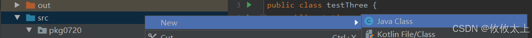 右键src,鼠标放在new上选择Java Class,在出现的窗口选择Class进行取名。