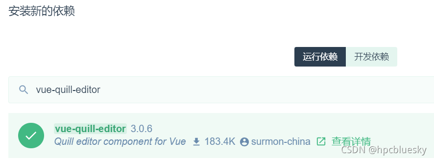 18、安装运行时依赖 vue-quill-editor,富文本编辑器
