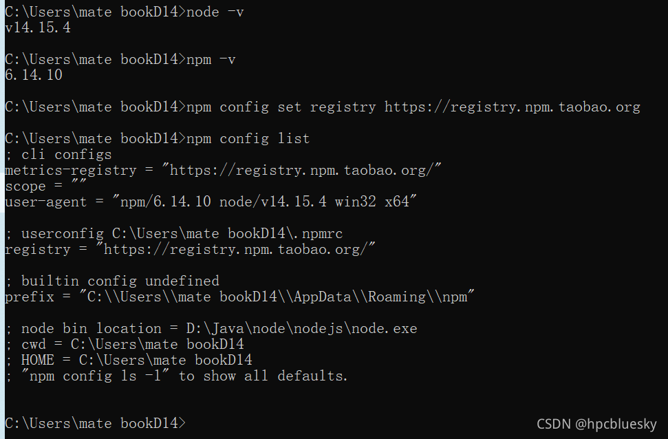 切换淘宝npm库:npm config set registry https://registry.npm.taobao.org