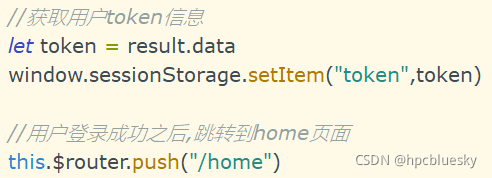 当用户登录成功之后,将token保存到客户端中的sessionStorage中,因为用户的其他操作都必须保证用户已经登录之后才能操作,所以通过sessionStorage保存用户的token记录,表示已经登录。