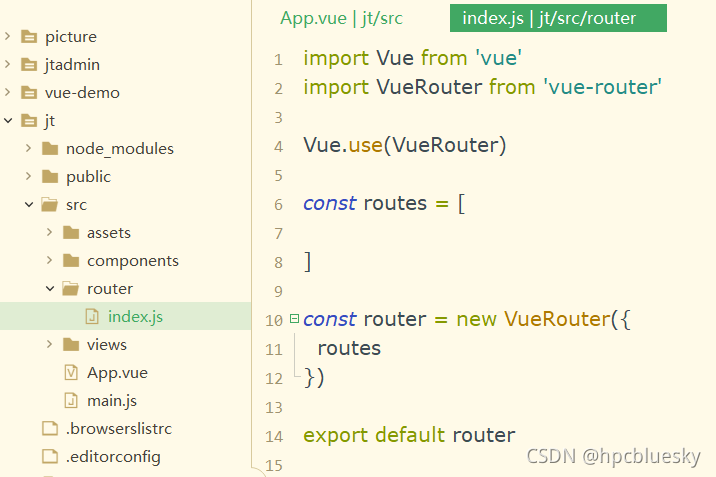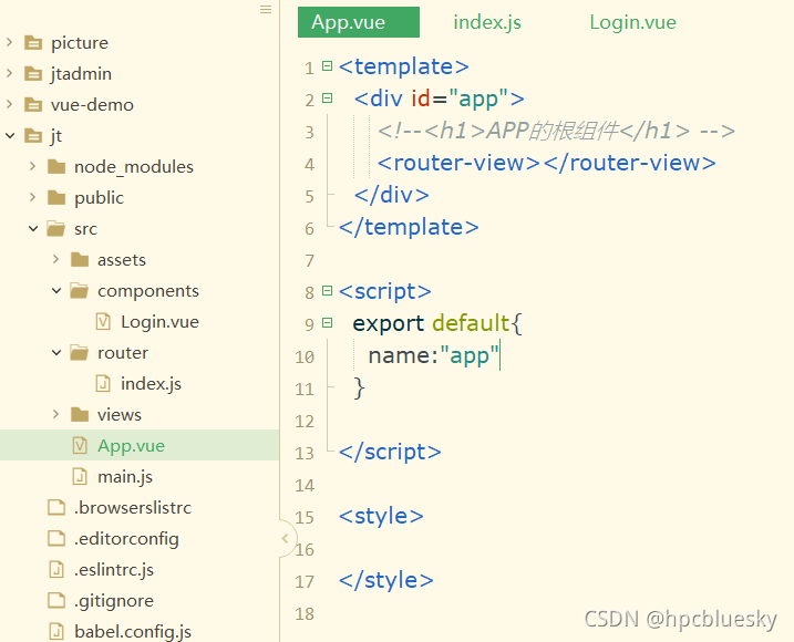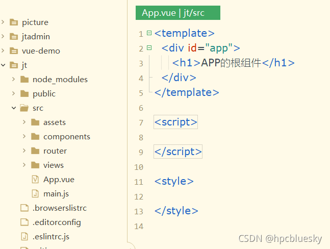 3、用HBuilderX打开vue目录下的jt,更改App.vue里面的内容