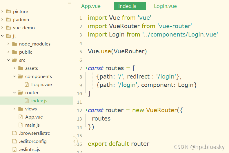 11、设定默认路径跳转,当用户访问根目录时,重定向到登陆组件