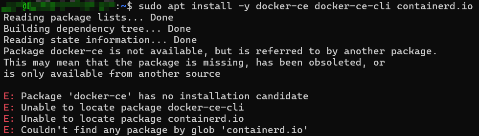 sudo apt install -y docker-ce docker-ce-cli containerd.io