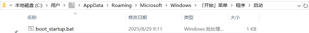 在桌面新建一个 boot_startup.txt 文件,将上述三行内容写入其中,然后修改后缀为 bat即可,最终文件名为 boot_startup.bat。当然文件名自定义叫啥都可以。