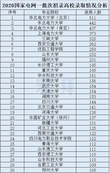 2020国家电网一批次录取高校前30