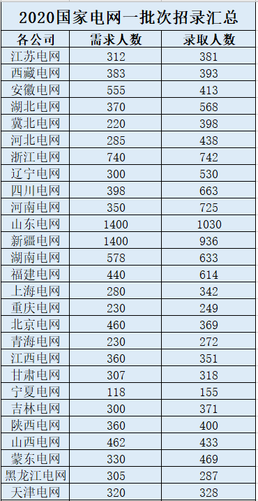 2020届国家电网一批次招录比分析