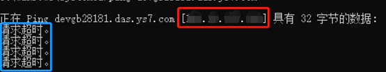 解决方案:红色框中的地址就是您的网络注册地址,端口号为6800。蓝框中的请求超时是因为服务端出于安全因素的考虑,是禁止ping的,做ping这一步的操作主要目的是为了拿到对应的注册IP地址。