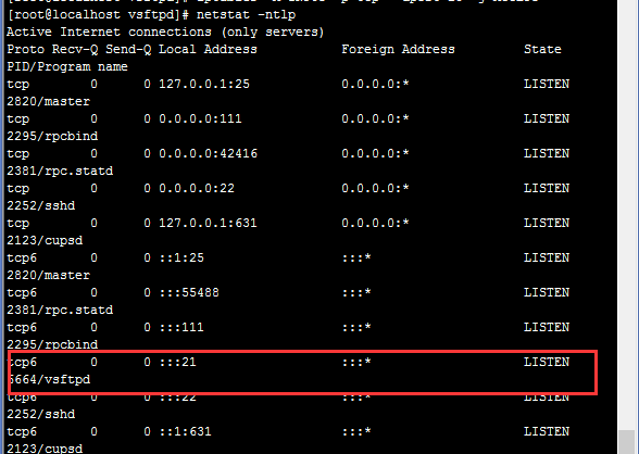 [root@localhost vsftpd]# iptables -A INPUT -p tcp --dport 21 -j ACCEPT