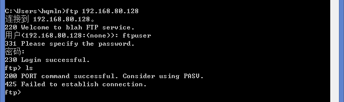 1,根据你的提示问题是比较简单的。 首先在windows 命令符下,普通使用的是Port模式,所以客户机的防火墙挡住了一些高端端口的出口。 在这种情况下,你开启Win7客户端防火墙,开放一些1025,到65500这些端口即可实现正常访问。 其次,你可以使用FTP工具来下载,比如Filezilla,FlashFTp。这样的工具,他们会有被动模式直接开启的功能 。 2,你提示的下面的这个配置方式,如果要开启Linux防火墙,也要客户端能用被动模式能访问,还在添加如下的端口:这些端口根据你的配置中的设定来添加,下面的命令只是一个假定 iptables -t filter -I INPUT -p tcp --dport 21 -j ACCEPT iptables -t filter -I INPUT -p tcp --dport 65400:64100 -j ACCEPT service iptables save && service iptables restart. iptables -nL 这样用户就可以用被动模式来访问了。 PASV_enable=YES 开启被动模式 PASV_min_port=%number% 被动模式最低端口 PASV_max_port=%number% 被动模式最高端口