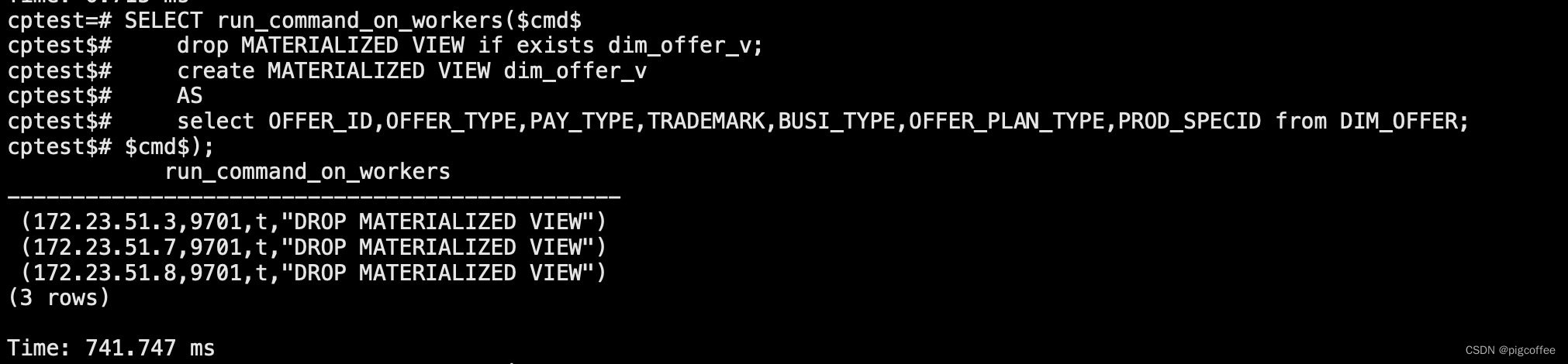 物化视图(Materialized View)和视图(View)类似,也是一个视图名字对应一个SQL查询查询语句。不同之处在于:物化视图定义时使用了额外的关键字materialized, 它把结果集保存在起来,查询的时候直接读取保存的结果集,而不必扫描原始表。物化视图的结果集(即物化视图自己的数据)的存储和扫描方式和普通表的方式相同。