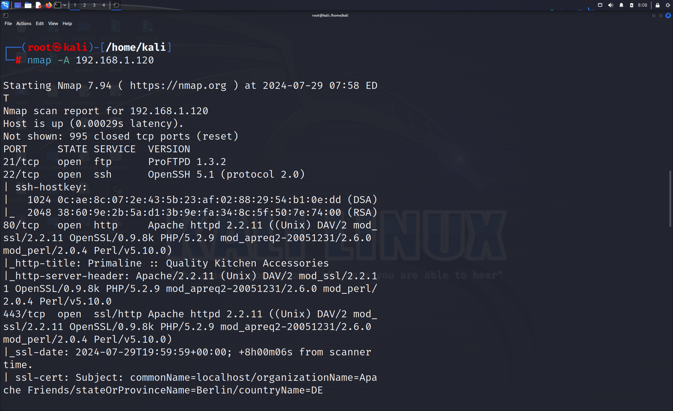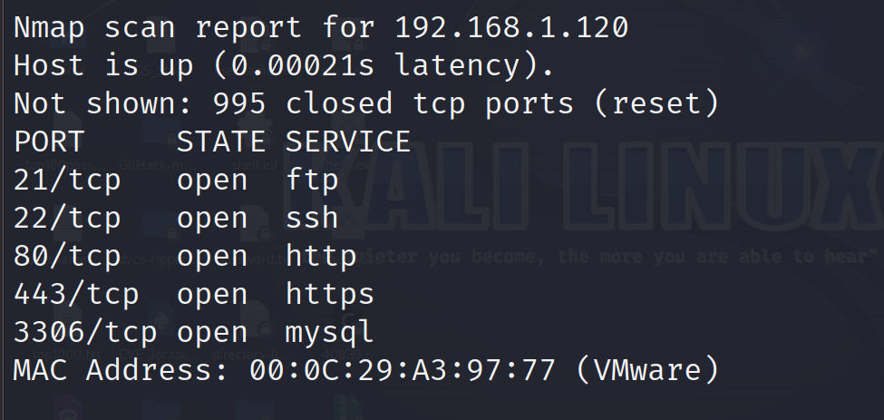 查看开启端口,可以看到端口 80、443、3306、21、22 已打开
