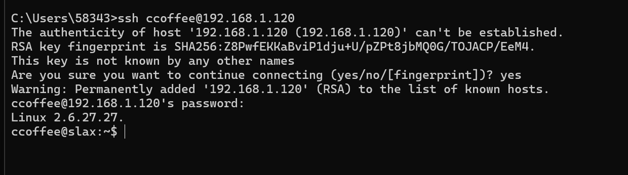 使用用户名作为 ccoffee 进行了 SSH