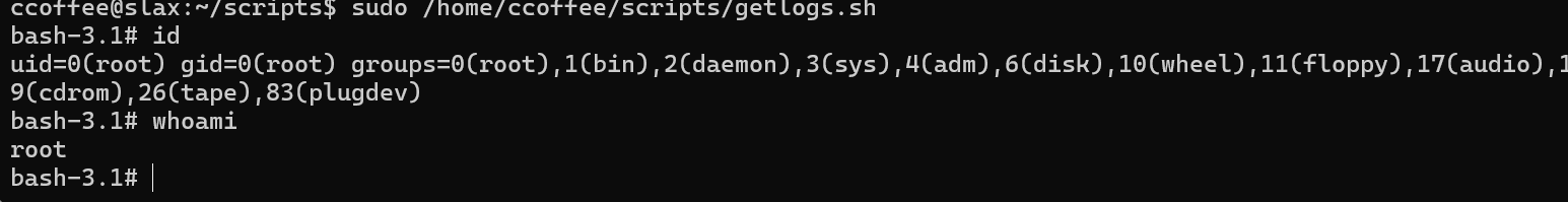 sudo /home/ccoffee/scripts/getlogs.sh