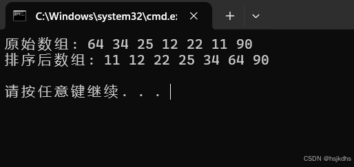 int arr[] = {64, 34, 25, 12, 22, 11, 90};
