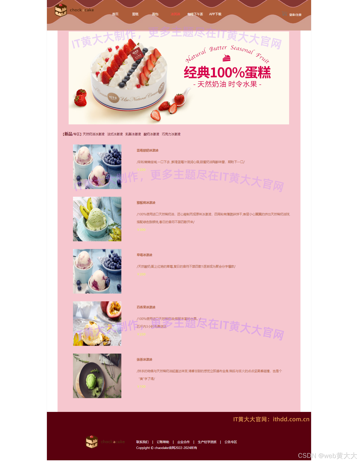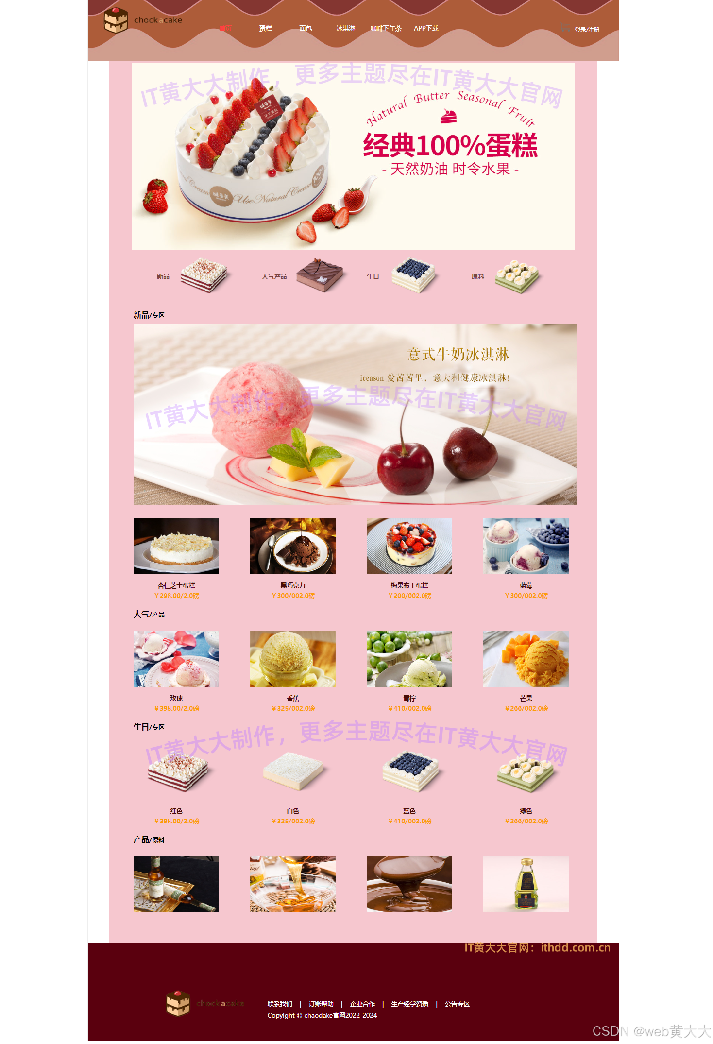 🏷️ 大学生美食甜品静态HTML网页设计作品,采用DIV CSS布局制作,内容包括:首页、蛋糕、