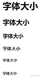 <hn></hn>标题标签,决定文字的大小,n为数字,取值为1~6,数字越大,字体越小。
