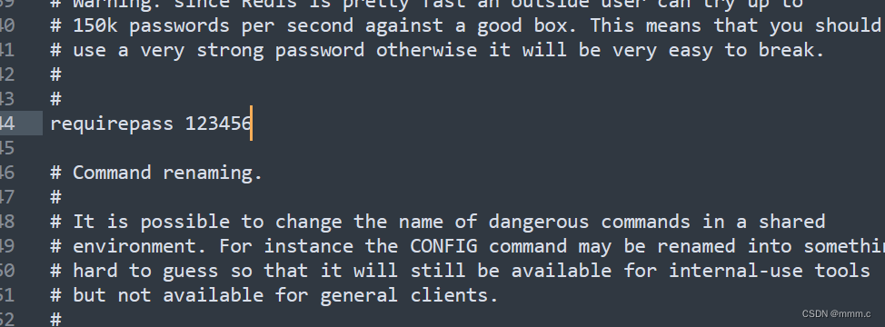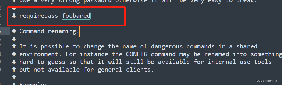 4.2然后将该行注释去掉,并将 foobared 改为要修改的密码,保存退出。