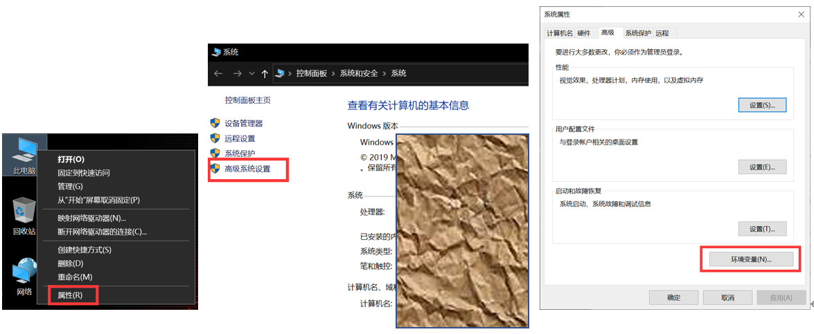 - 如下图Figure 7,右击"我的电脑"------“属性”------“高级系统设置”------“环境变量”