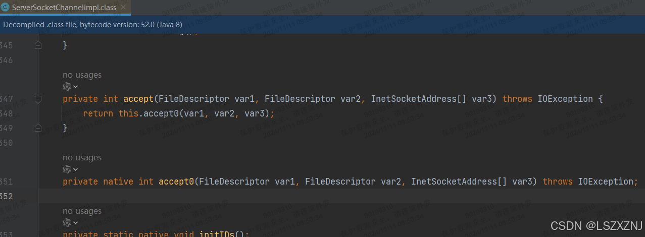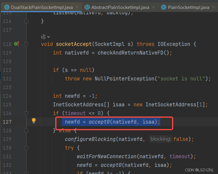 可以看到,这里的 accept0 和 socketServer的accept0 是不同的实现类中的方法。