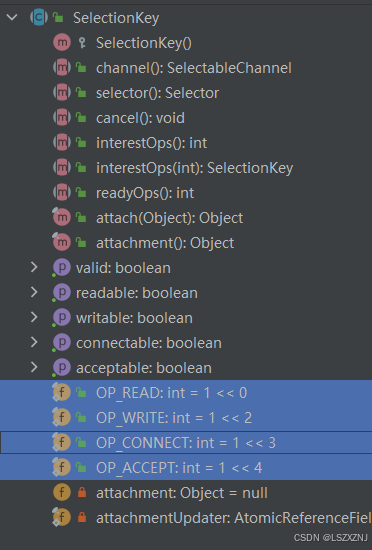 跟选择器相关的一个类,SelectionKey,提供了4种类型的选择,读 写 连接 接收