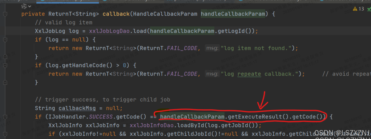 2025-01-07 09:48:24 [com.xxl.job.core.thread.TriggerCallbackThread#callbackLog]-[197]-[xxl-job, executor TriggerCallbackThread] <br>----------- xxl-job job callback fail, callbackResult:ReturnT [code=500, msg=java.lang.NullPointerException, content=null]